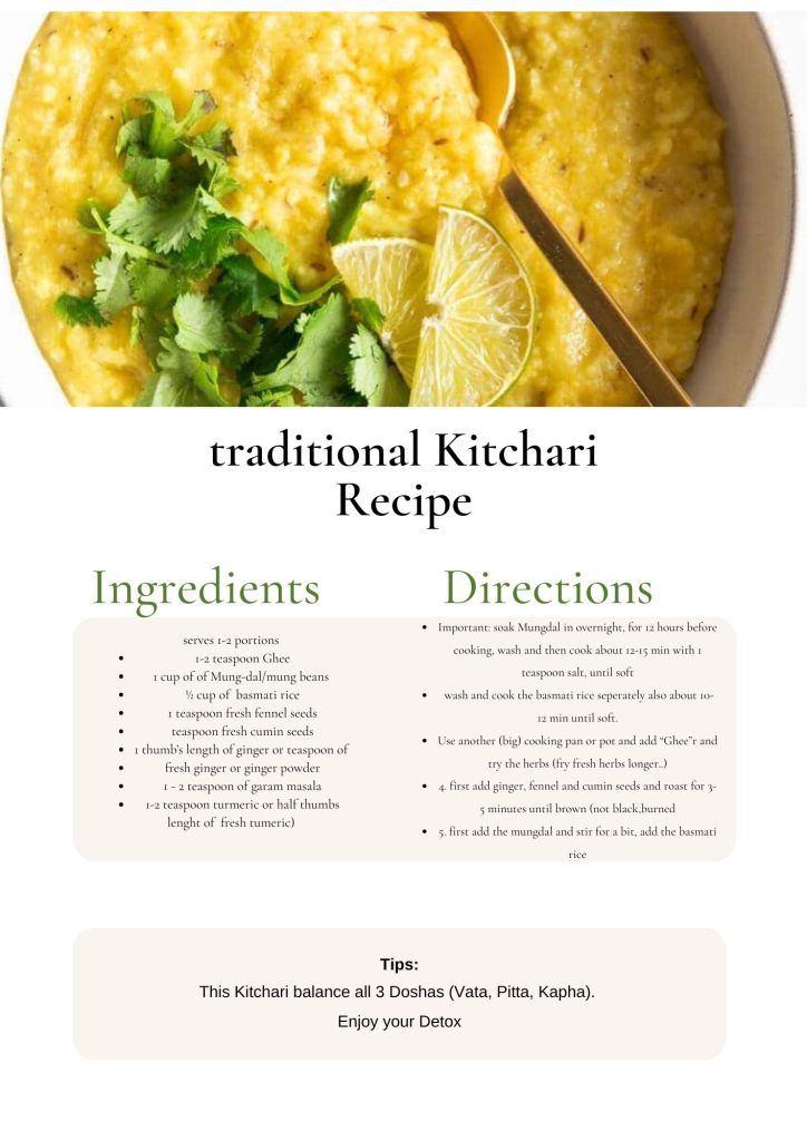 Below, you’ll find the wonderful traditional Kitchari recipe I’d love to share with you. This gentle detox supports gut purification, softens the stool, and helps release Ama—remember: Ama = toxins.